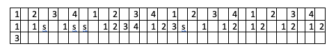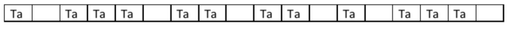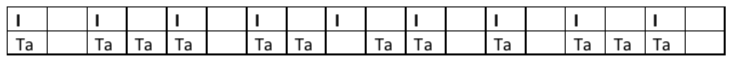 Dans le tableau ci dessus : la pulsation est dans les cases du haut et le rythme dans les cases du bas. Ce rythme comporte 9 pulsations (1 case son et 1 case silence) Il y a 18 cases c’est un chiffre pair. Pour les rythmes qui se retrouveront dans des cases impaires, nous verrons cela dans une autre partie de ce didacticiel.