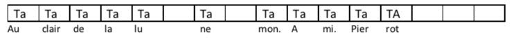 - Chanter les rythmes avec le son « Ta » et frapper dans les mains la pulsation.