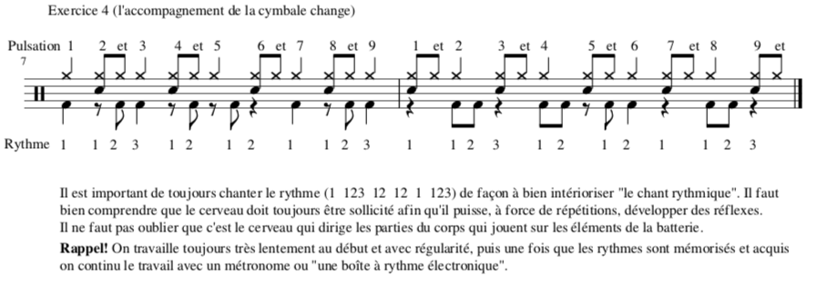 - Adaptation du rythme sur une batterie