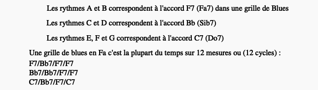 L’habillage des rythmes A1, B1, A2 et B2 à partir des gammes correspondantes aux accords :