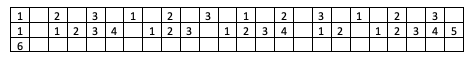 (1) (1 2 3) (1 2) (1 2) (1) (1 2 3)