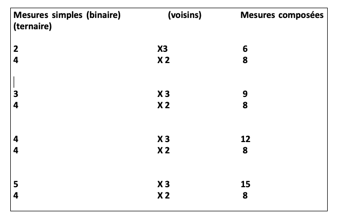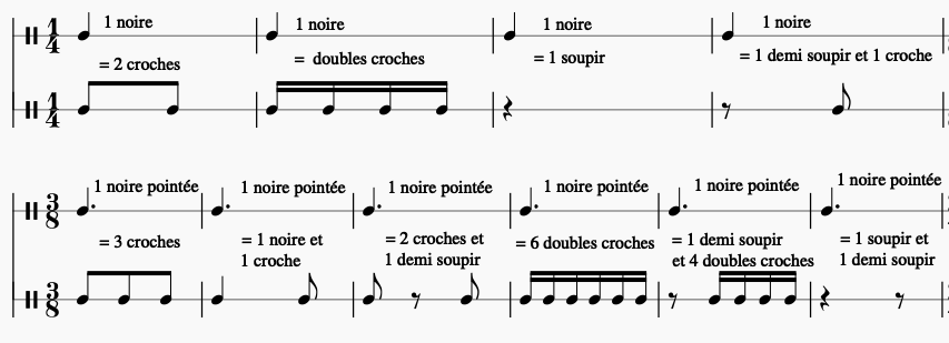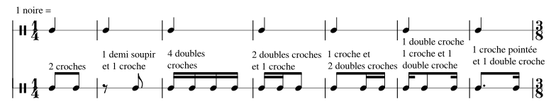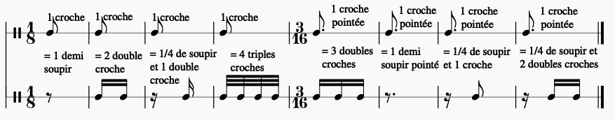 Équivalences de rythmes par rapport aux noires et aux noires pointées :