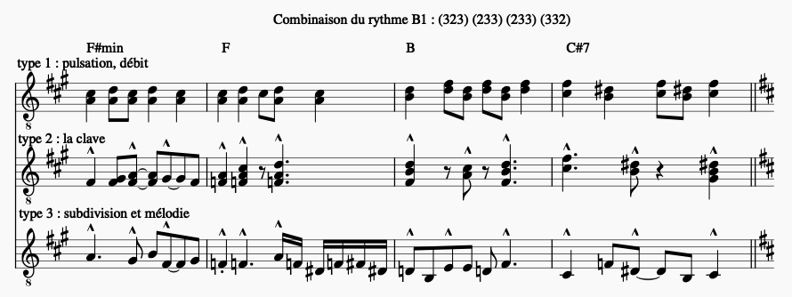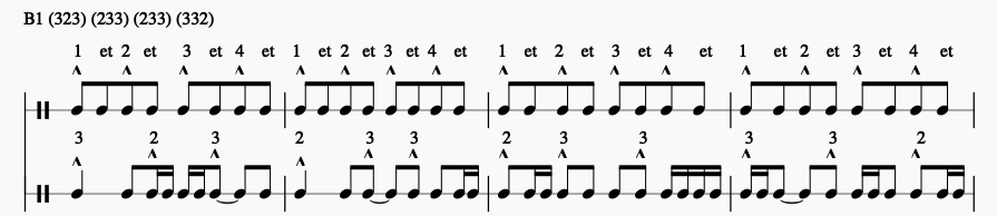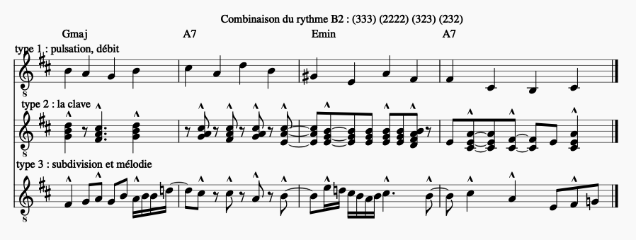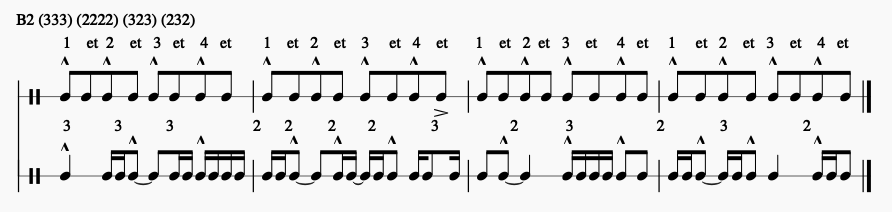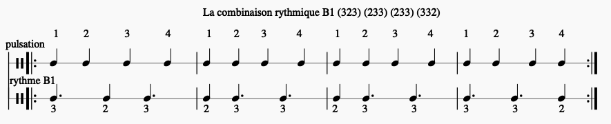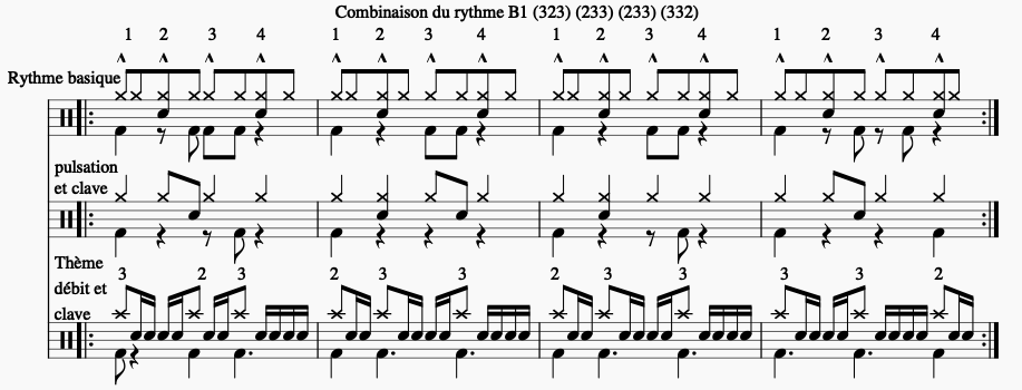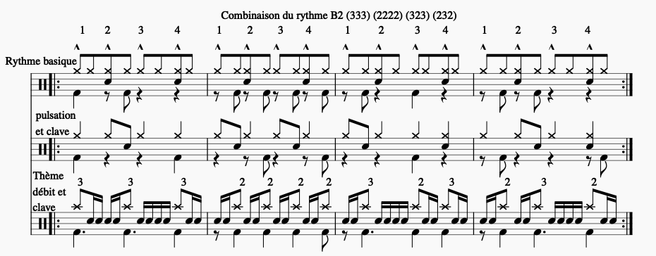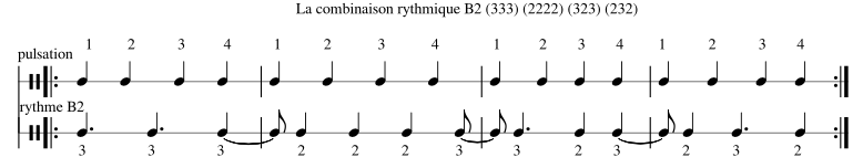 Combinaison du rythme B2 : (333) (2222) (323) (232)