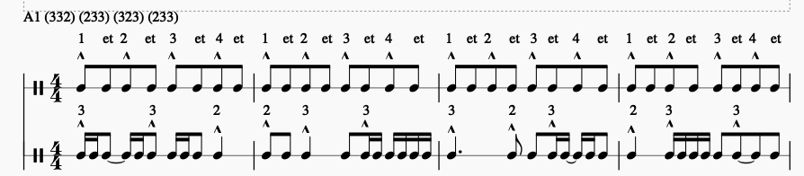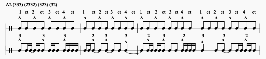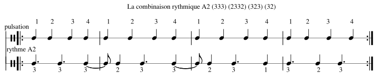 Combinaison du rythme A2 : (333) (2332) (323) (32)
