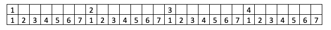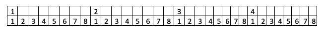 Cependant, avec cette méthode, nous allons commencer avec des sons et des silences identiques en durée. C’est le point de départ. Nous allons fonctionner avec des chiffres :